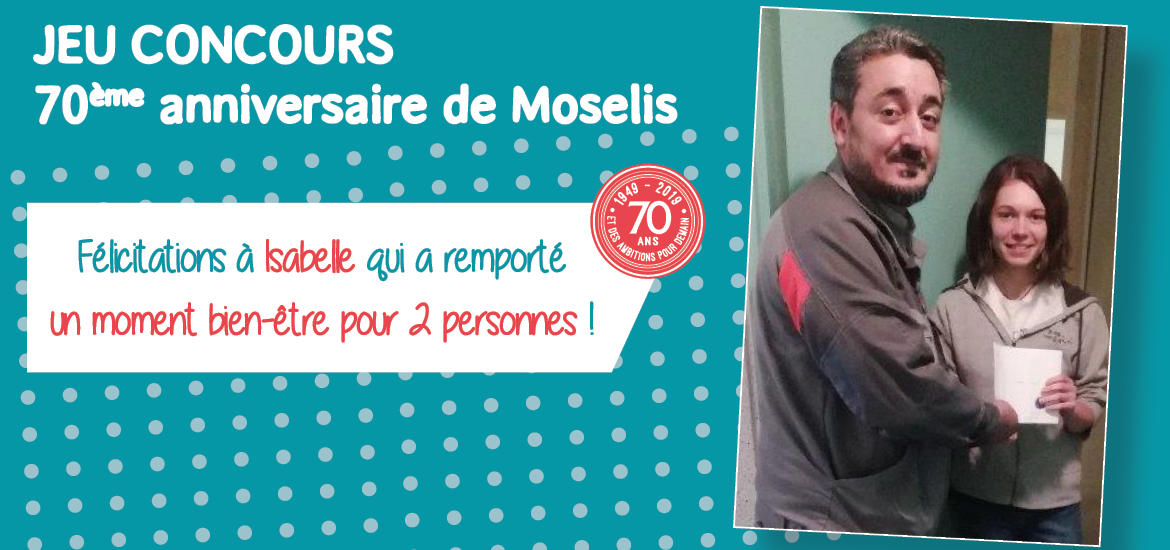 Dans le numéro 66 de Mieux vivre, nous vous offrions la possibilité de gagner un moment bien-être à l’occasion du 70ème anniversaire de Moselis. Il suffisait de répondre à la question : « A quelle date Moselis, alors Office Public d’Habitations à Loyers Modérés (OPHLM), a-t-il accueilli ses premiers locataires ? ».