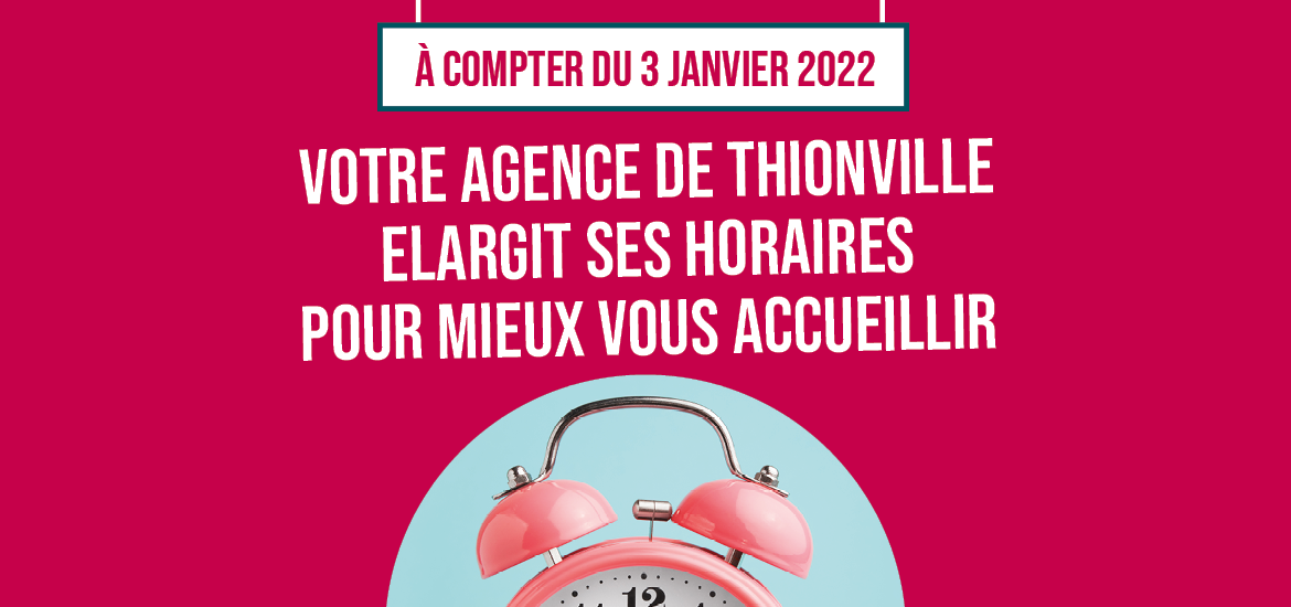 A compter du 3 janvier 2022, votre agence de Thionville vous accueille avec des horaires élargis, plus adaptés à vos besoins.